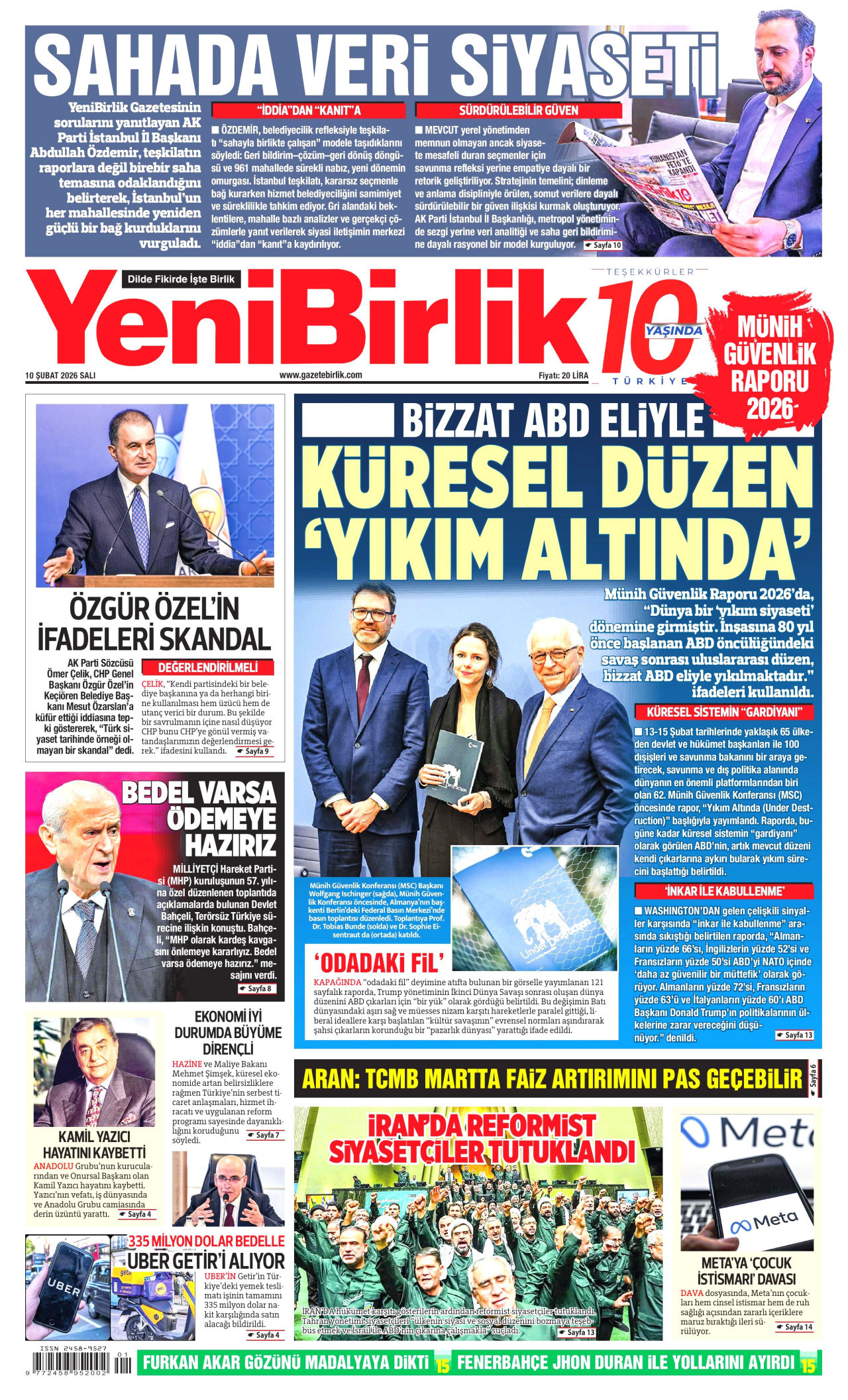 YENİBİRLİK Gazetesi 10 Şubat 2026, Salı Günü Manşeti